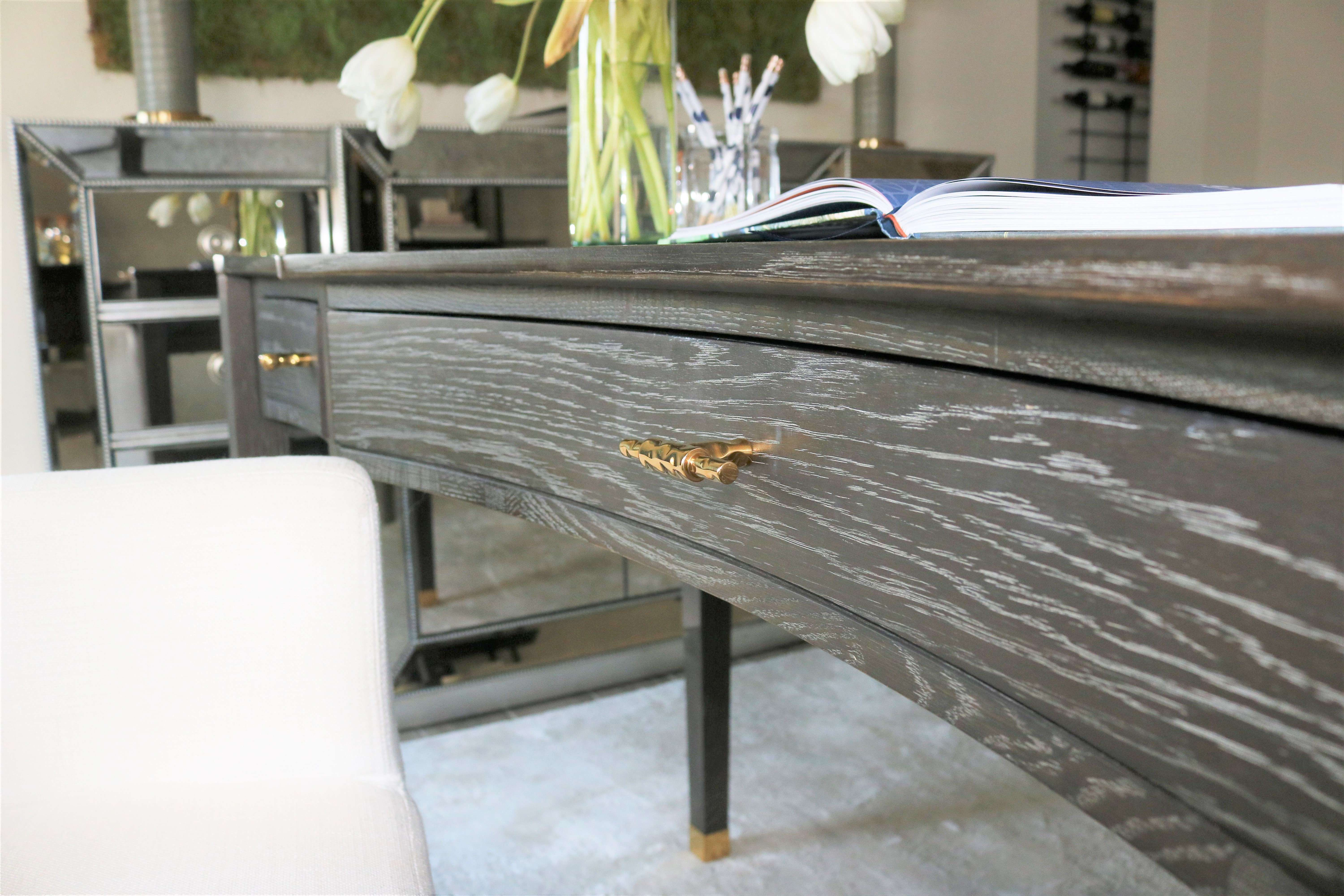 The moment I locked eyes on this taupe settee I knew it was meant for my home office. I love the lush fabric and the curved wraparound back that envelopes you as you sit. Not to mention the hardware finished in blackened brass. Mix those metals!