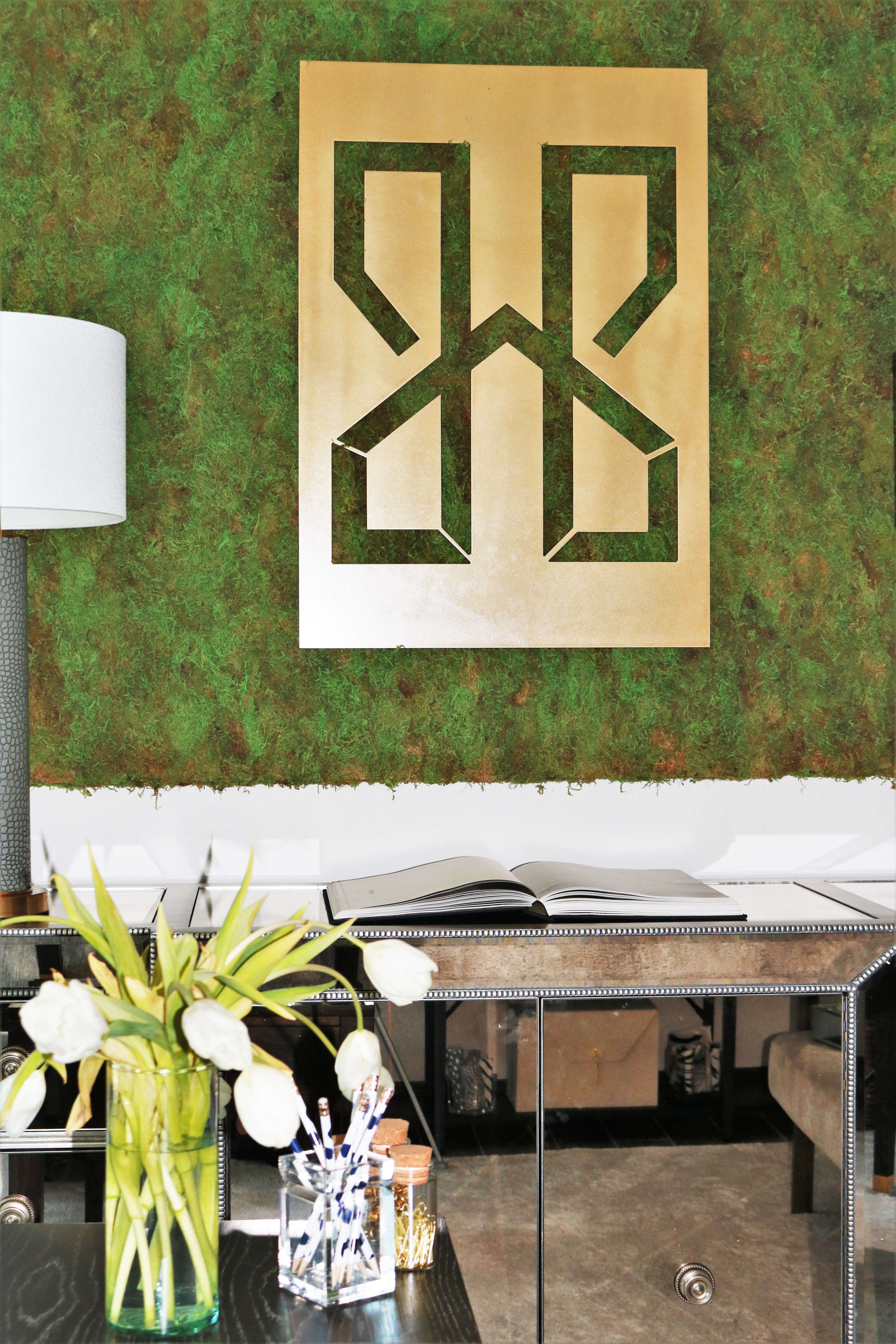 While I was in the early design phase of this room I was simultaneously creating the logo and branding MRI. As soon as my logo was finalized I knew that I wanted it to be on display. What I didn’t know was how. After brainstorming and playing with different ideas I came up with this moss wall idea. I love mixing different textures and materials to create a multi-dimensional space. Incorporating the custom moss wall and the metal MRI logo did just that, instantaneously adding depths of interest and layers. I have a friend who owns a fabrication shop who made this for me, thanks, Ryan! Making your own moss wall can be a super easy DIY project too.