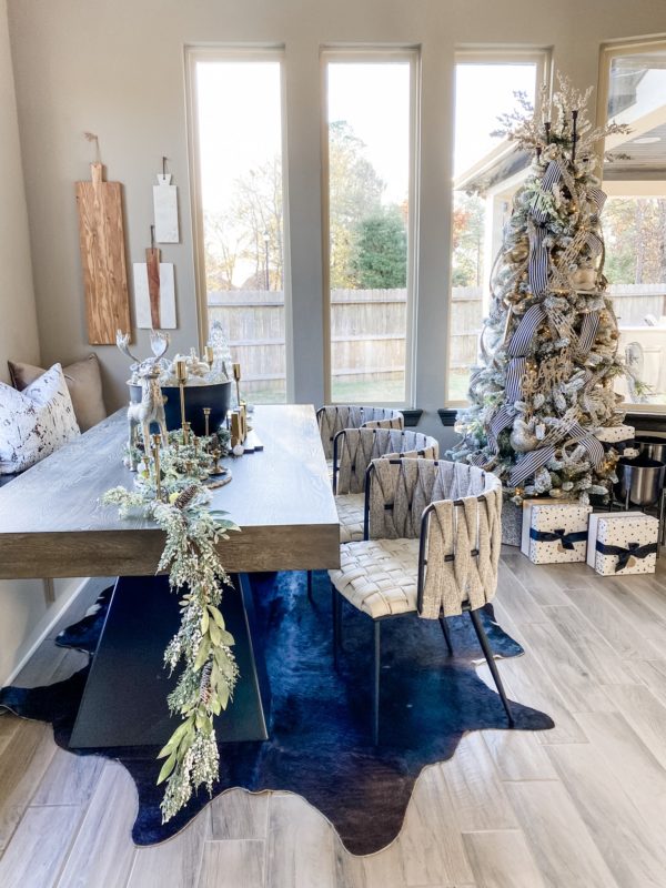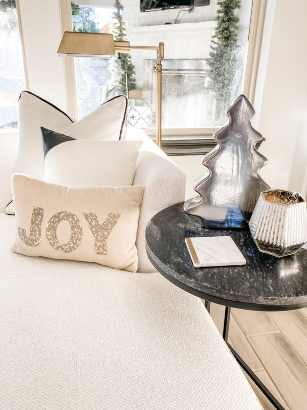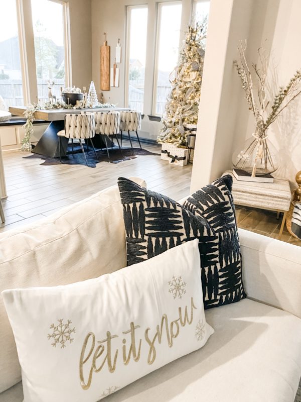 Pro Tip: Layering in non-Christmas, bold textiles within your Christmas decor will give your home a unique finish. I mixed in these textured 24″ and stunning black and linen pillows, use code MR35 for 35% off!