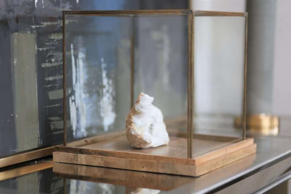 I love display boxes. Display boxes allow you to feature an item that isn’t big enough independently. Another bonus, they are also great to protect special pieces from dust. The geode I have here would be a real pain to dust plus the size of the agate alone wouldn’t work here without the display box. The box makes me feel like the stone is essential but also makes it more purposeful. This display box also brings in another natural element, wood. The wooden base paired with the glass case and brass accented trim pull together nicely.  I mean, and let’s not forget the oversized piece of art that adds in lots of color, texture, and movement bringing the focal point up. Together these elements ground the credenza and let its beauty shine through.