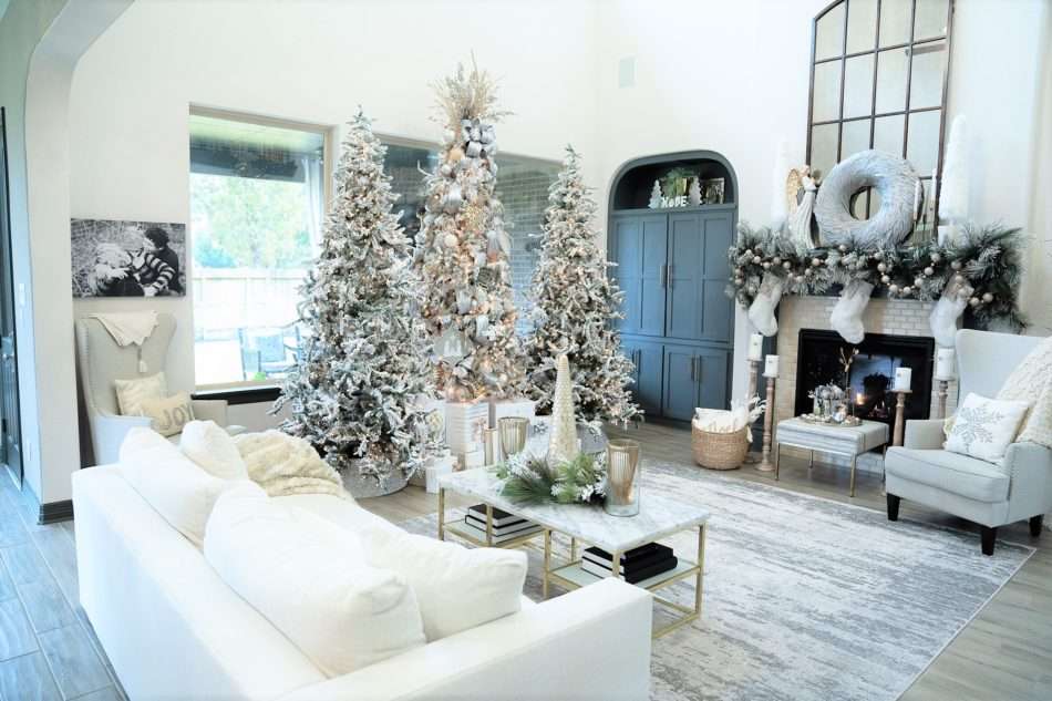 Welcome to the official 2018 MRI Christmas home tour. This year I wanted our home to feel as if we were submerged in a real-life winter wonderland and with flocked trees and shimmering monochromatic tones all over. I must say it truly feels magical.