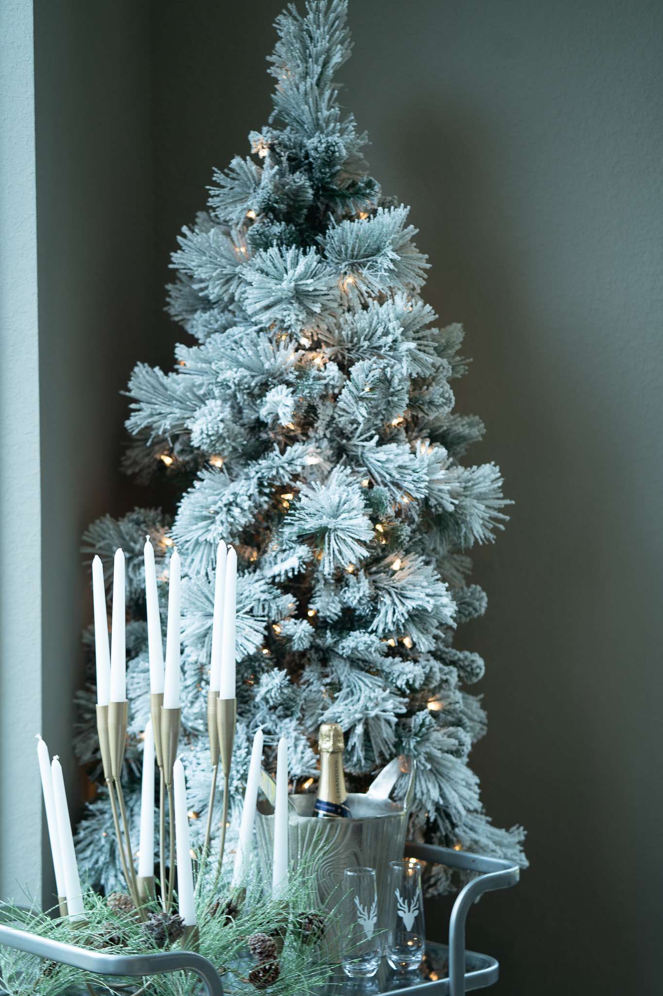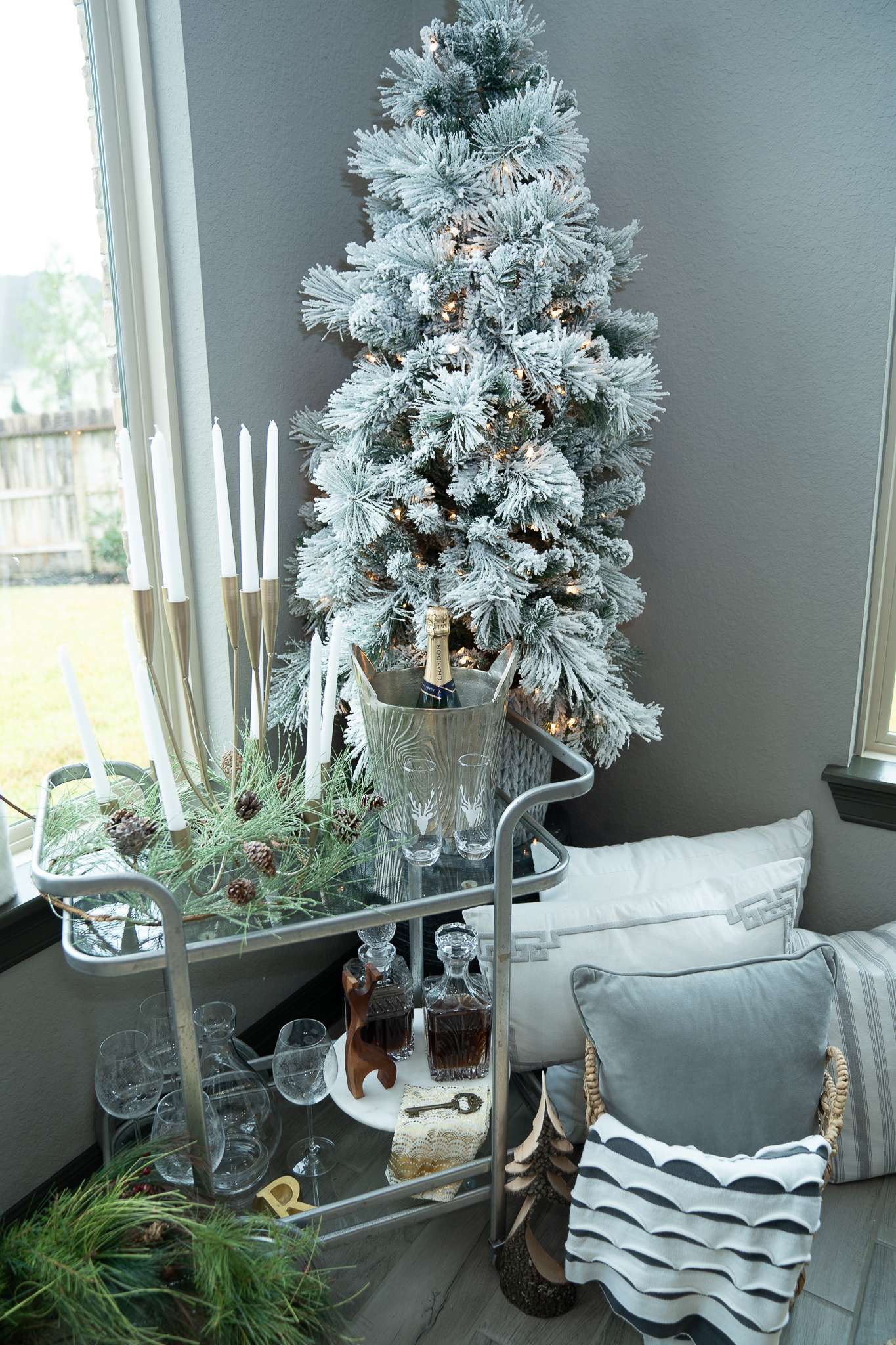 Welcome to the official 2018 MRI Christmas home tour. This year I wanted our home to feel as if we were submerged in a real-life winter wonderland and with flocked trees and shimmering monochromatic tones all over. I must say it truly feels magical.