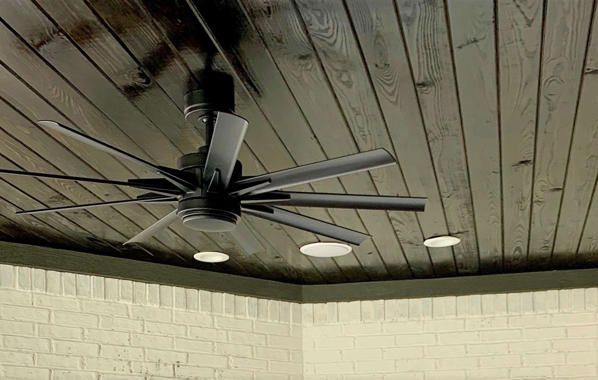 It is H.O.T. in Texas like H.O.T. H.O.T.! Fans are a must. Again, I think over every aspect in terms of design. Yes, it has to be functional, but it has to go with the overall vibe of the space. I found a customizable nine-blade fan for the existing patio. There are so many options; you are sure to find the perfect combination for any room.