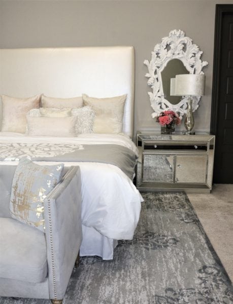 I highly suggest hanging a chandelier. Unfortunately for us a fan is a must. While there are some decorative fans on the market I find that they often look cheesy and still don’t give the right vibe. If a fan is a must you still have options. Extra tall lamps can do the trick. I suggest using lamps at least 30″ high, drama! These lamps are SO gorgeous, check them out. A pendant light hanging over your nightstand is another fabulous option and seriously is phenomenal! You can check some out on THIS project I did this fall.
